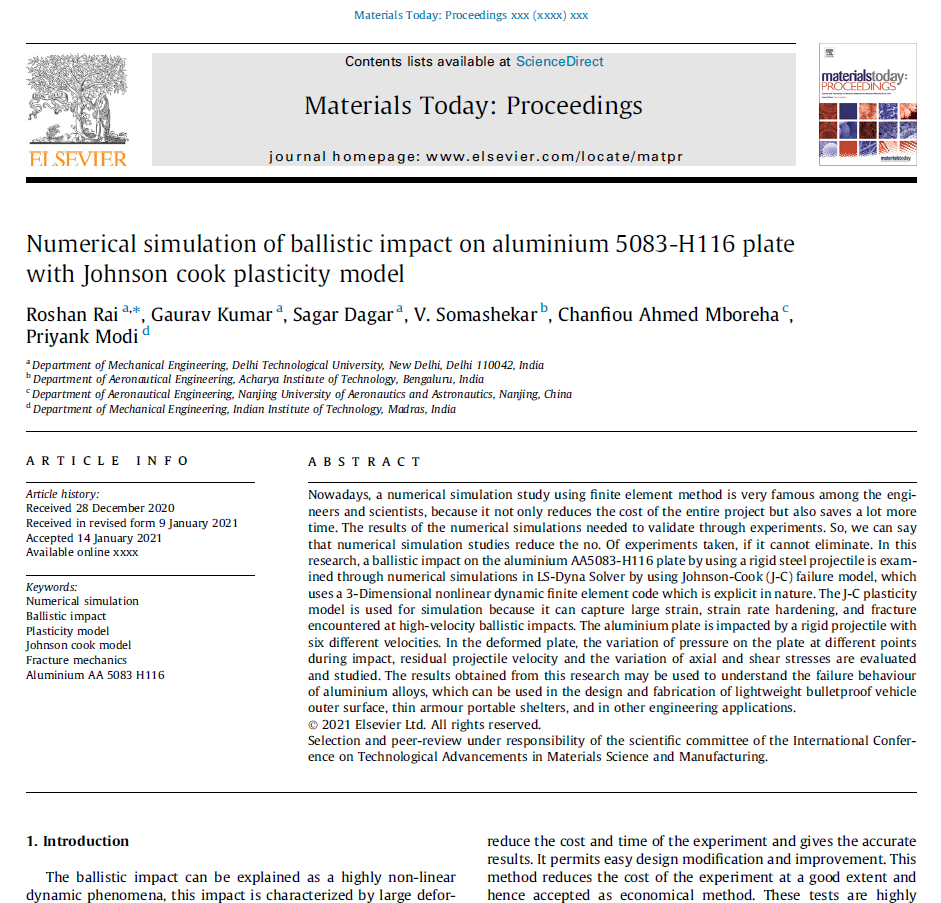 In this question, the spherical projectile will be modeled in Rigid form and the Plate is made of Aluminum AA5083-H116