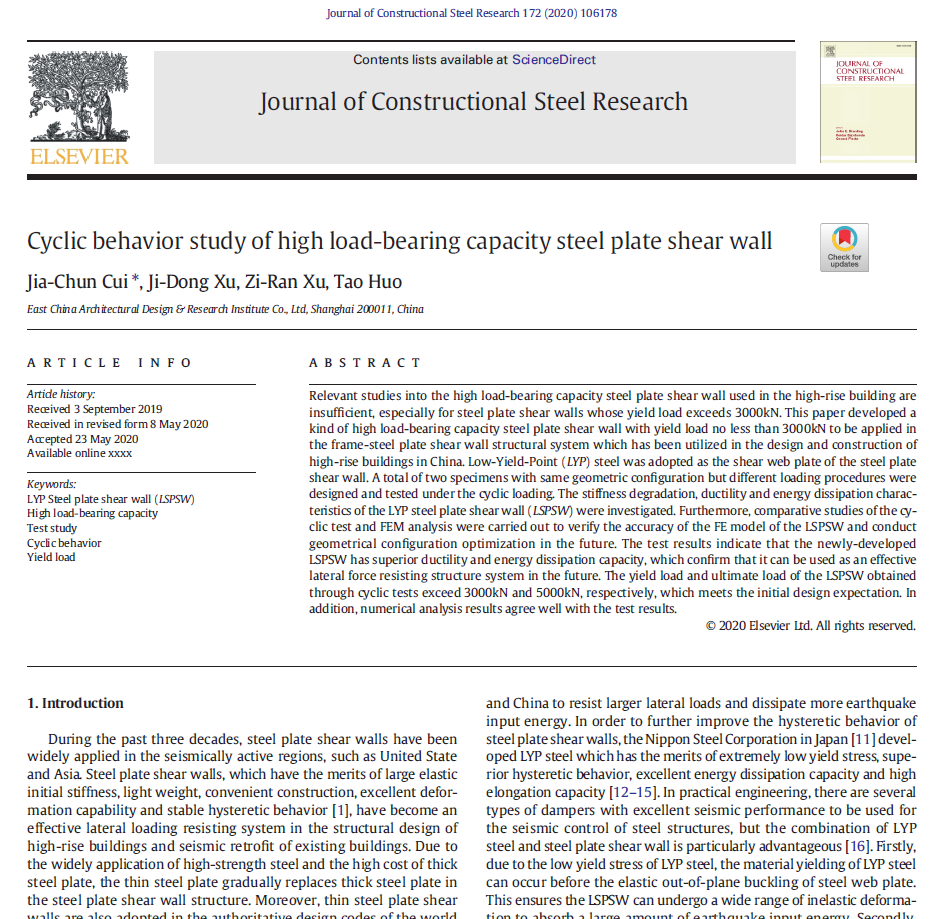 Be the first to review “Cyclic behavior of Low-yield-point (LYP) steel plate shear wall with stiffener Abaqus”