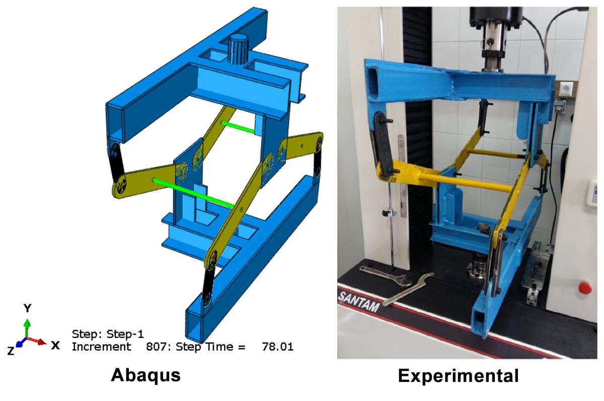 In the right picture, the laboratory Model and in the left picture, the Model having been simulated in the Abaqus software can be observed