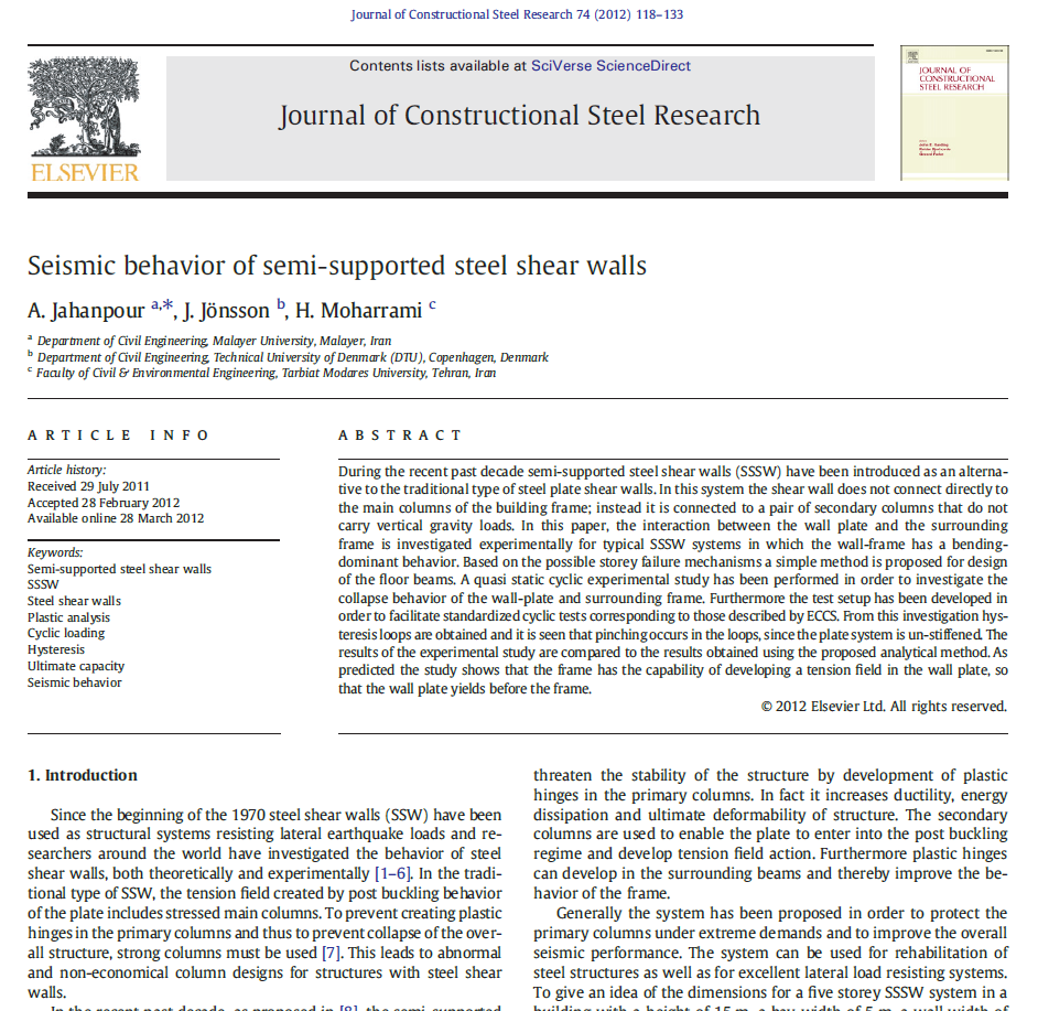 In this example we intend to simulate the semi-supported steel shear wall undergoing a cyclic loading in the Abaqus software