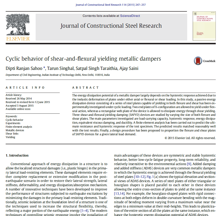 As you observe in the picture, the yielding metallic damper is composed of shear plate, flexural plate, end plate and shear tab